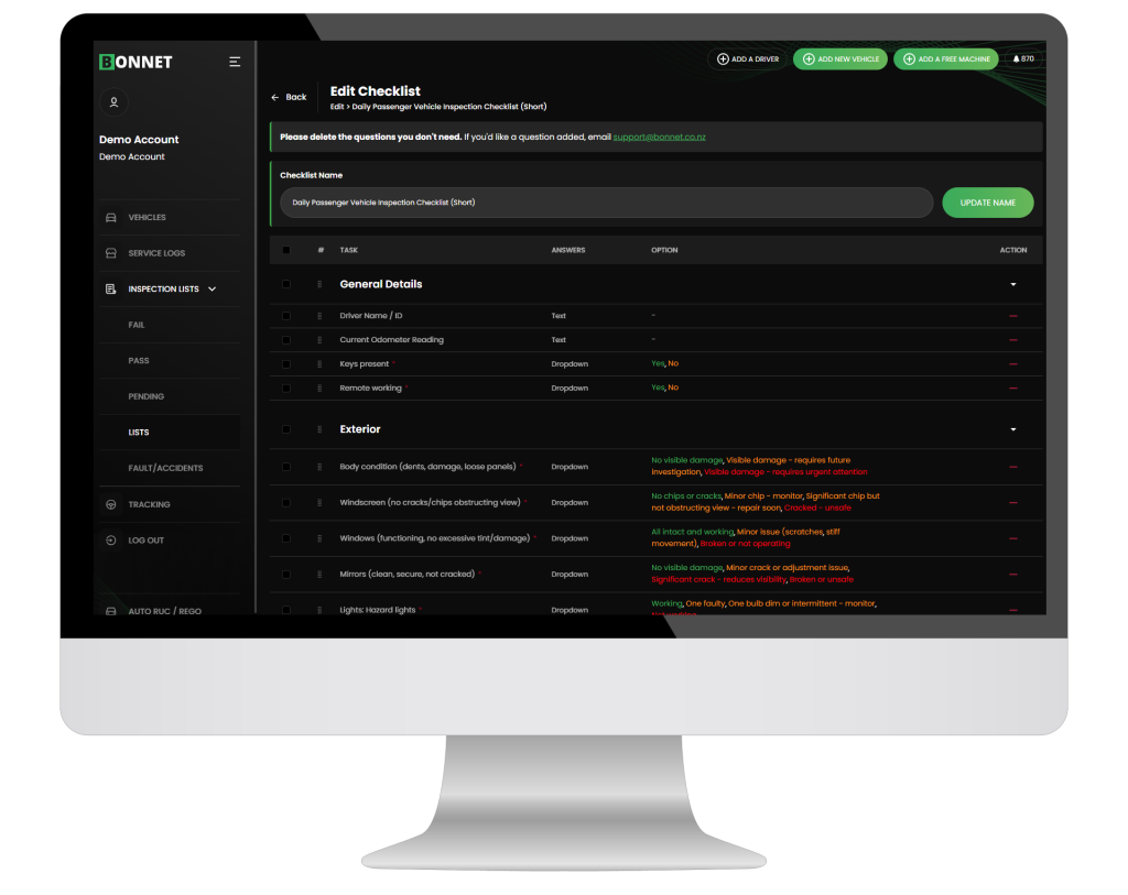 Vehicle Inspection Checklists, Now Live on BONNET Fleet