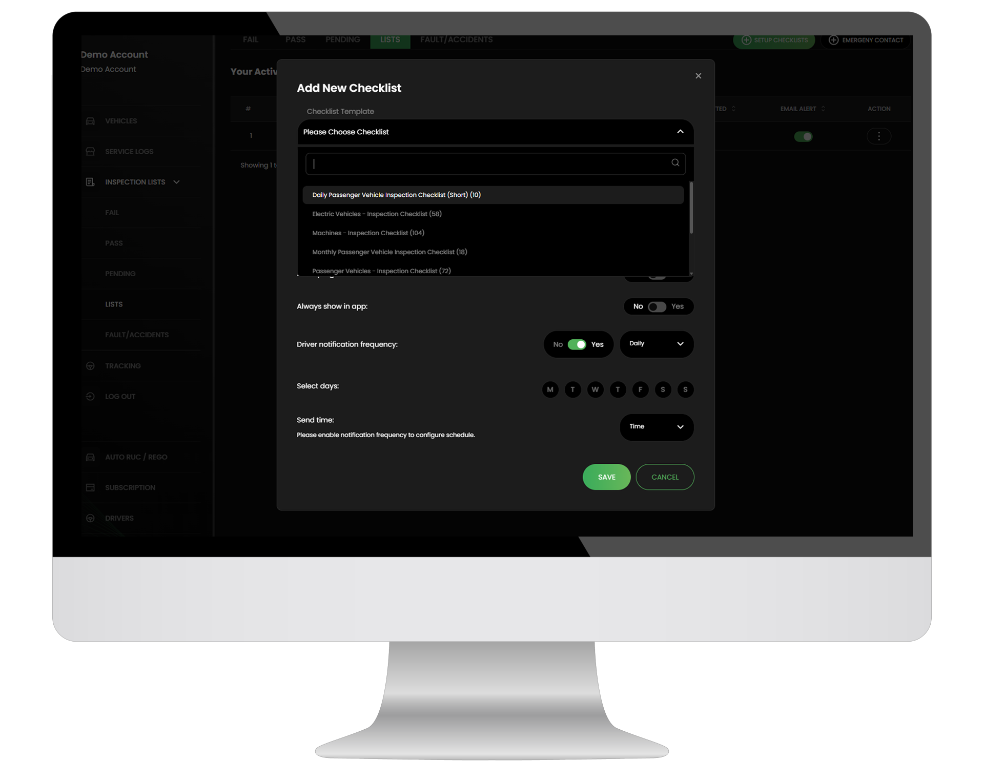 Inspection Checklists are made for teams running passenger vehicles, trucks, vans, utes, EVs an even Rental fleets. They allow managers to assign checks at specific times, like daily or weekly, or leave them open so drivers can complete them whenever needed.